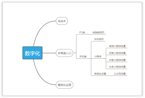 学而思在2003年开始进军教育行业,主攻课外辅导,为了突破地域的限制,降低公司运营成本,在国内互联网异军突起的时候,抓住先机,改变单一的线下教育模式,利用PC+手机+小程序+公众号的多渠道,实现线上数字化。